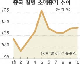 16일 중국 상무부와 국가통계국에 따르면 지난달 중국 내 전체 소매는 602억달러(약 66조원)로 지난해 같은 기간보다 14.2% 증가했다. 이는 지난 5월 이후 5개월 만에 가장 높은 수치이고, 중국 경제전문가들이 예상한 증가율 13.3%를 뛰어넘는 것이다. 반면 물가는 4.3% 오르는 데 그쳐 지난 9월 5.2% 상승보다 낮아졌다.