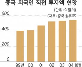 또 올해 들어 지난달까지 중국에 직접투자된 외국자본은 538억달러(약 59조원)로 이미 지난해 전체 투자액 535억달러를 넘어섰다. 지난해 같은 기간에 비하면 23.5%가 늘어난 액수다.