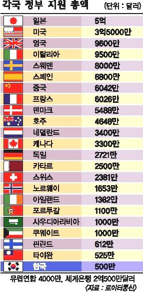 스웨덴 역시 민간인들의 성금이 2일 현재 4430만유로를 기록중이며, 노르웨이도 민간인들이 모두 2400만유로를 성금으로 내놓았다.