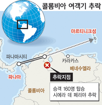 제세 샤콘 베네수엘라 내무장관은 “파나마를 출발해 카리브해의 프랑스령 마르티니크 섬으로 향하던 콜롬비아 여객기가 이날 오전 3시쯤 카라카스 관제당국에 엔진 고장을 보고하며 비상착륙 허가를 요청한 뒤 10분 만에 시에라 데 페리야 지역에 추락했다.”고 말했다. 추락 지점은 콜롬비아 접경으로부터 불과 20㎞ 떨어진 곳이었다.