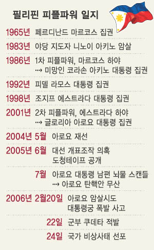 또 경제난이 가중되면서 상당수 국민들이 정치 염증과 더불어 ‘마르코스 향수’까지 보이는 피플파워 피로 현상도 나타나고 있다.