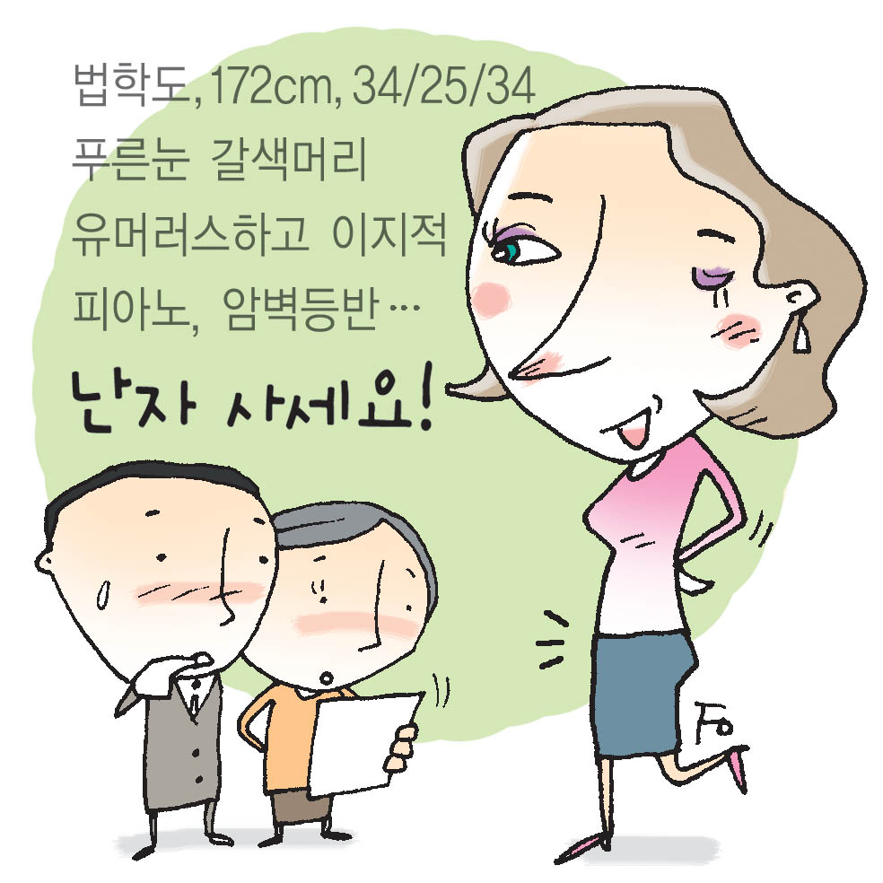 “ ■ 844번: 나이 26세 직업 은행원 용모 가슴둘레 34인치·갈색 직모에 높은 광대뼈 특이사항 오빠는 공군장교 성격 유머러스하고 지적이며 다재다능 취미 피아노·암벽등반”