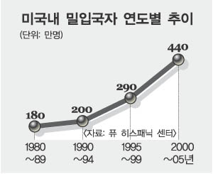 25일(현지시간) 로스앤젤레스(LA)에서는 50만명의 인파가 모여 새 이민법안 반대시위를 벌였다. 앞서 밀워키와 피닉스, 애틀랜타에서도 23일과 24일 수만명이 참여한 이민자 시위가 열렸다. 상원 법안심의를 앞둔 정치권도 이 문제를 쟁점화할 태세다.11월 중간선거에 미칠 파괴력을 의식한 탓이다.LA타임스는 경찰발표를 인용,“60년대 베트남전 반대시위는 물론 역대 최대 규모였던 1994년 이민정책 반대시위보다 훨씬 많은 수가 모였다.”면서 “미국 역사상 최대 규모의 이민자 시위”라고 보도했다.