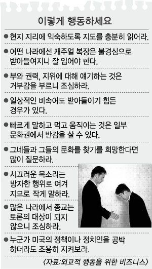 미 재계가 세계적으로 확산되는 반미 감정을 누그러뜨리기 위해 해외 출장자들의 매너를 개선하자는 ‘어글리 아메리칸 추방 운동’을 벌이고 있다고 월스트리트저널이 11일(현지시간) 보도했다.