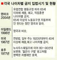 특히 나이차별을 부분 규제해 온 미국, 호주와 달리 영국은 채용과 승진, 해고, 직업훈련 등에서 65세를 넘지 않는 한 나이가 많거나 적다는 이유로 차별하지 못하도록 전면 금지했다.