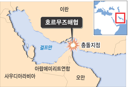 충돌한 일본 유조선은 가와사키 기선 소속의 30만t급으로, 사우디아라비아 항구에서 원유를 싣고 싱가포르로 향하던 중이었다. 충돌로 왼쪽 선미 부분이 손상을 입은 뒤 일부 침수됐으나 물을 빼낸 뒤 항해하고 있다. 이 유조선은 선체 점검을 위해 가까운 아랍에미리트연합(UAE) 항구로 이동 중이다.