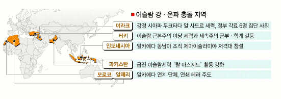 전 세계 이슬람 강경파의 공격이 갈수록 격화되고 있다. 이라크를 비롯한 중동 지역은 물론이고 아시아와 북아프리카에서 온건세력과 충돌을 일으키며 공격적으로 입지 확보에 나서고 있다.