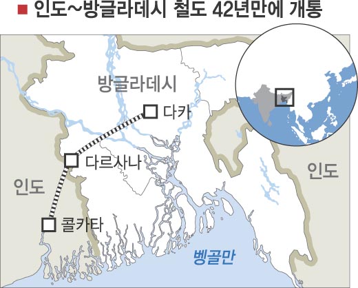 BBC방송은 9일 “인도 정부관리 등 승객들을 태운 열차가 지난 8일 인도의 콜카타를 출발, 국경을 넘어 방글라데시의 수도 다카에 도착했다.”고 보도했다.