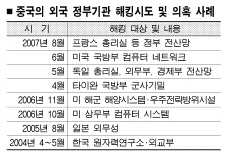 이처럼 최근 중국 해커들의 사이버 공격이 예사롭지 않다. 중국 해커들은 지난달엔 프랑스 정부 전산망을 공격했다. 이에 앞서 5월에는 독일도 스파이 프로그램을 이용한 중국 해커들에 의해 총리실, 외무부, 경제부 등 3개 정부부처가 공격을 당했다. 영국도 의회와 외무부 등 정부 전산망을 뚫고 들어오려는 중국 해커의 공격 시도에 수차례 시달렸다. 이외에 지난해 10월엔 미 상무부 컴퓨터 시스템이,2005년 8월엔 일본 외무성이,2004년 4월엔 한국의 원자력연구소와 외교통상부가 중국 해커들의 침입을 받았다.