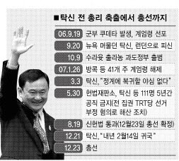 탁신이 내년 2월14일 귀국할 것으로 알려진 가운데, 군부가 그의 재집권을 막기 위해 제2의 쿠데타를 일으킬 가능성도 있다는 전망도 나오고 있어 태국의 정국 혼란은 지속될 것으로 보인다.