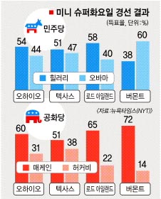 또 오바마의 지지층인 대학생과 연소득 10만달러 이상의 유권자들이 일부 흔들린 것도 눈에 띈다.