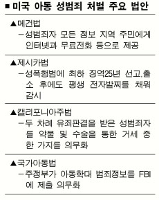 |워싱턴 김균미특파원|미국은 아동을 상대로 한 성범죄 등에 대해서는 법정 최고형으로 무겁게 다스리고 있다.