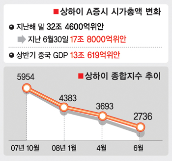 |베이징 이지운특파원|중국이 올 상반기 창출한 국내총생산(GDP)이 모두 증시에서 증발했다.