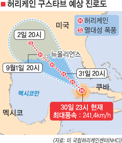 3년전 ‘카트리나’ 위력 능가… 1일~2일 뉴올리언스 상륙