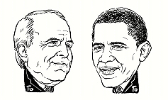 오바마(얼굴 오른쪽)는 5일 노스캐롤라이나에 머물면서 클린턴 행정부 고위관료 출신인 변호사 그레그 크레이그를 상대로 TV토론 연습을 했다.