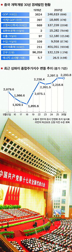 베이징의 한 경제전문가는 8일 미국발 금융위기를 맞는 중국의 경제 상황을 이렇게 표현했다. 지난 30년 초고속 성장에 따른 부작용에 시달리는 형편에 글로벌 금융위기로 처지가 더욱 곤란해졌다는 얘기다.