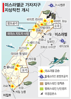 지난달 27일부터 가자 지구에 대해 전면전을 펼쳐온 이스라엘군은 공습 8일째인 이날 가자 지구로 진입해 지상전에 돌입했다.외신과 현지 언론에 따르면 이날 저녁 이스라엘 보병과 포병 수만명이 전투 헬리콥터의 지원 아래 가자 지구 북부로 진입했다.다음날인 4일 이스라엘군은 이 지역을 집중 공격한 뒤 고립시켜 가자 지구를 남북으로 분리했다고 외신들과 현지 언론이 전했다.