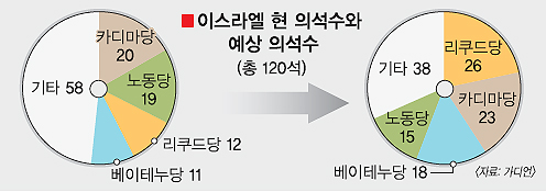 실제 최근 여론조사 등을 감안하면 중도 여당인 카디마당의 막판 추격도 만만치 않아 예단은 어렵지만 보수 야당 리쿠드당이 다수당을 차지할 것이란 전망이 우세하다. 반면 노동당은 이번 전쟁으로 꽤나 많은 표를 잃었다.