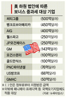 미 하원이 AIG를 비롯, 정부 구제금융을 받은 기업이 지급하는 보너스에 대해 최대 90%까지 세금을 부과하는 내용의 법안을 19일(현지시간) 통과시켰다. 하지만 이같은 조치로 정부의 금융안정화 노력이 위기를 맞을 수 있다는 지적이 나오고 있다.●일각선 구제금융 프로그램 실패 거론