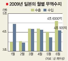 일 재무성은 23일 지난 6월 수출이 35.7% 줄어든 4조 6000억엔, 수입은 41.9% 감소한 4조 920억엔을 기록했다고 발표했다. 전년 동기보다 4.9배나 많은 5080억엔(약 6조 7000억원)의 무역흑자를 냈다. 1년 8개월 만에 지난해의 수준을 넘어섰고, 5개월 연속 흑자 추세를 이어가고 있다.
