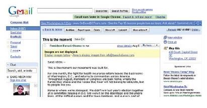 경제공황 때 프랭클린 루스벨트 대통령이 라디오를 활용한 ‘노변정담’으로 민심을 파고들었다면, 오바마 대통령은 이메일을 화롯가로 끌어들인 셈이다. 몇달 전부터 이메일은 온통 의료보험 개혁 관련 내용이다. 그만큼 이 사안이 최대 현안이라는 방증이다.