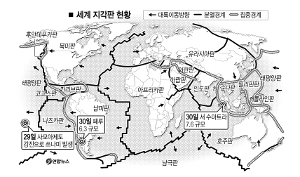 사모아 제도, 인도네시아 지진은 모두 인도네시아에서 칠레에 이르는 환태평양 조산대의 왕성한 지각 활동으로 발생했다. 전세계 지진의 90%가 일명 ‘불의 고리’라 불리는 이 지역에서 발생한다고 영국 가디언이 30일(현지시간) 보도했다.