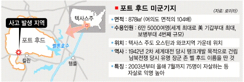 미국 텍사스주(州) 포트 후드 미군기지에서 5일(현지시간) 총기난사 사건이 발생, 13명이 숨지고 30명이 다쳤다. 뉴욕타임스(NYT) 등 외신들은 이번 사건을 ‘미군 기지 역사상 최악의 총기난사’로 표현하고 있다.●총격 전 “신은 위대하다” 외쳐