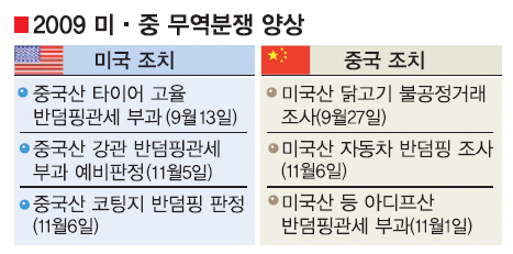 미국은 최근 중국산 타이어에 대한 35% 반덤핑관세 부과 조치에 이어 지난 5일에는 중국산 강관 제품에 대해 최고 99%의 반덤핑 관세를 부과하겠다는 예비판정을 내렸다. 또 중국산 코팅지에 대해서도 덤핑 판정이 내려져 관세 부과가 임박한 상태이다. 야오 대변인은 “이 같은 무역 보호주의는 국제무역 환경에 큰 악영향을 미치고 있다.”면서 “글로벌 금융위기 대응책의 효과를 크게 감소시키는 한편 경기회복에도 걸림돌로 작용하고 있다.”고 말했다.