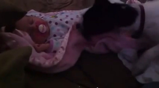 사람이 아닌 개가 잠든 아기의 이불을 덮어주려고 애쓰는 영상이 인터넷에서 화제다.