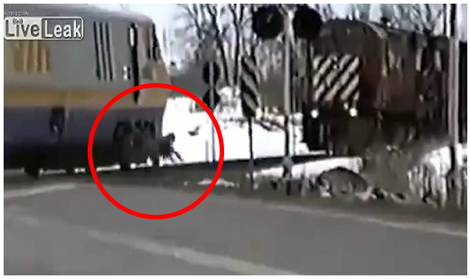 하지만 남성은 열차의 속도를 이기지 못해 고꾸라지고 만다. 남성의 무모한 짓 6초쯤 지나 열차는 멈춰 선다.