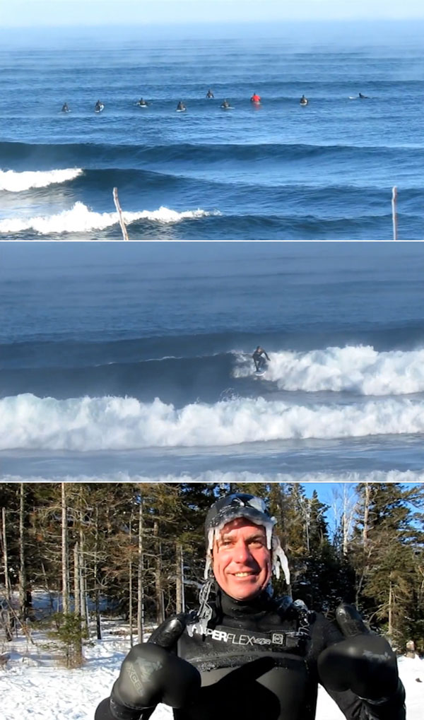 잠시 후 서퍼들은 큰 파도에 몸을 실은 채 멋진 묘기를 선보인다. 그러나 날씨 탓에 몸이 굳었는지 조금지나 물에 빠지고 만다. 물에서 나온 서퍼들의 머리엔 금새 고드름이 생긴다. 물 속 체감온도는 무려 영하 46도다. 하지만 한파를 이기려는 서퍼의 얼굴은 행복한 듯하다.