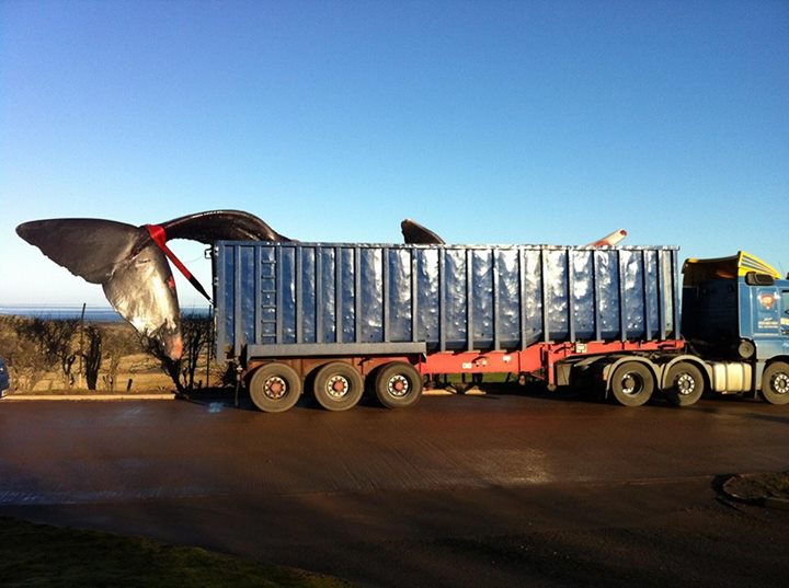 해당 사진은 지난 15일 페이스북 ‘Portobello Online’ 이름의 계정으로 공개 되었다. 사진을 보면 길이가 긴 트레일러 뒷 편으로 큰 덩치의 향유고래의 꼬리가 보인다.
