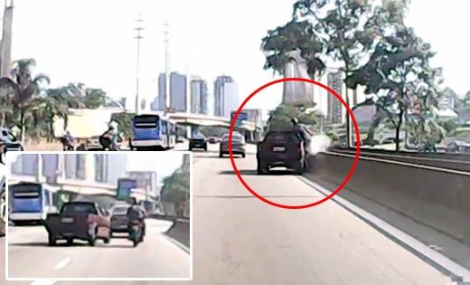 브라질 상파울루 한 고속도로에서 차량과 오토바이가 충돌하는 아찔한 사고가 발생했다고 현지 언론이 14일 보도했다.