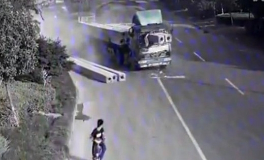 1분 20여초 분량의 영상은 화물트럭 옆으로 오토바이들이 달리고 있는 모습으로 시작된다. 이어 경사면을 오르던 녹색 화물트럭의 적재함에 실려 있던 콘크리트 빔 일부가 도로에 쏟아진다. 놀란 운전자가 급히 제동을 걸자 일부 콘크리트 빔이 운전석을 뚫고 나오는 끔찍한 상황으로 이어진다.