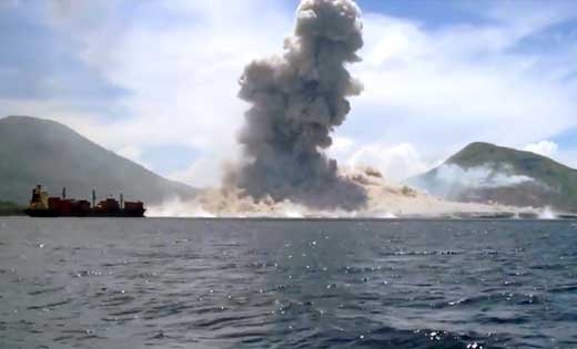 호주 북쪽에 있는 파푸아뉴기니의 동부 지역 섬에서 발생한 화산 분출 순간이 카메라에 포착됐다.