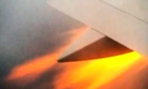 영상에는 왼쪽 날개에 장착된 엔진에서 불꽃이 일어나는 모습이 고스란히 담겨있다.