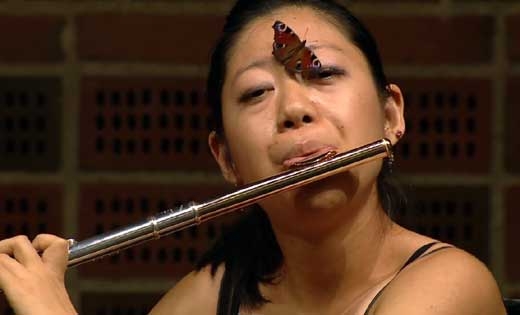 영국 일간 메트로의 17일자 보도에 따르면 해당 영상은 최근 덴마크 오덴세(Odense)시에서 열린 한 콩쿠르 경연장에서 촬영된 것이다. 당시 플루트를 연주하던 일본 출신의 유키 오타(Yukie Ota)의 얼굴에 나비가 날아와 앉았다.