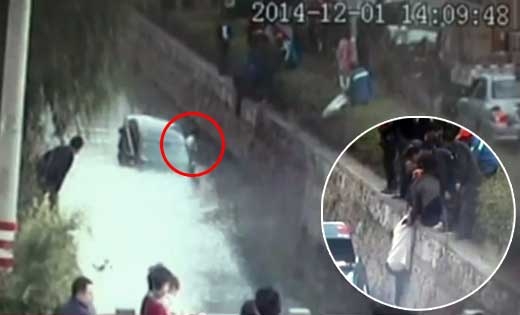중국에서 물에 빠진 차량의 운전자를 구조하는 시민들의 모습이 카메라에 포착돼 화제다.