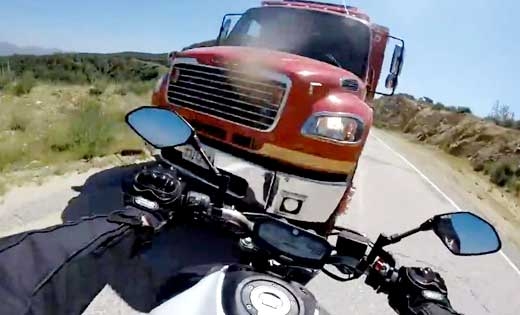 24일(이하 현지시간) 미국 뉴욕데일리뉴스는 로스앤젤레스 인근 산간도로에서 오토바이 운전자와 소방차가 충돌하는 사고 영상을 소개했다. 이 사고는 지난 4월 1일 발생 후 사고 당사자인 제시 로페즈(24)가 직접 영상을 공개하면서 알려졌다.