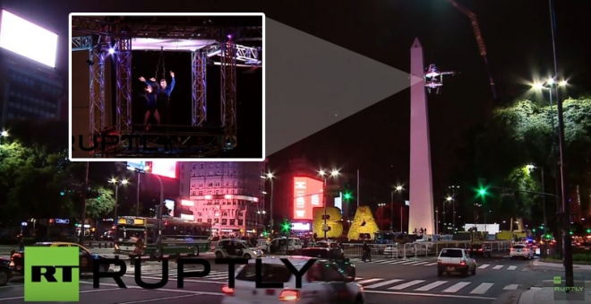 31일(현지시간) 아르헨티나 최대 일간지인 클라린 등 현지언론에 따르면 모라 고도이는 전날 밤 수도 부에노스아이레스에 있는 오벨리스크 탑 옆에 지상으로부터 65m 위에 설치된 고공 무대에서 파트너와 함께 탱고를 췄다.