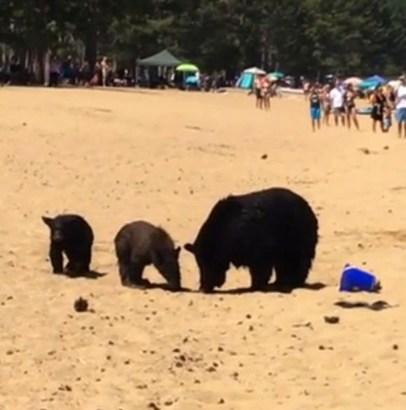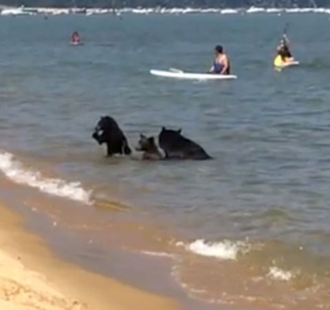 영상을 촬영한 팔라스 버클리(Pallas Buckley)는 “이것은 놀라운 일”이라며 “곰 가족이 한낮에 수영을 즐기기 위해 많은 해수욕객이 있는 곳으로 내려왔다”고 전했다.