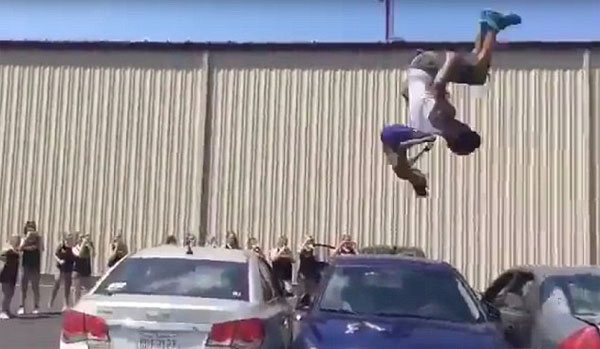 지난 8일(현지시간) 영국 데일리메일은 최근 미국 오하이오주 힉스빌 마을에서 주차된 3대의 차량을 공중제비로 뛰어넘는 10대 소년들의 모습이 담긴 영상을 소개했다.