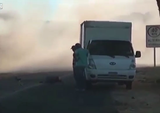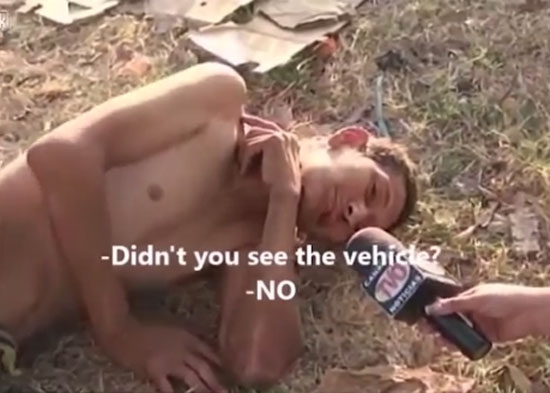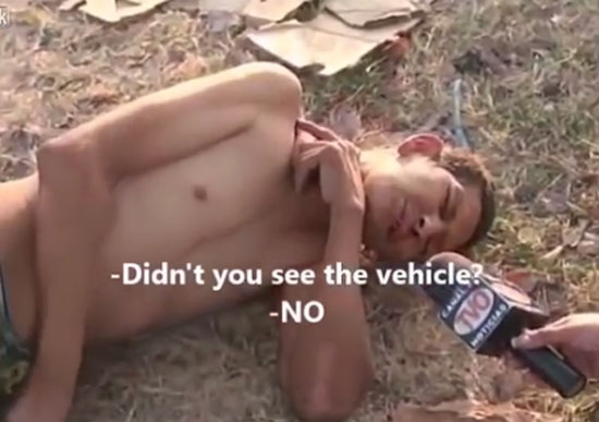 16일(현지시간) 영국 동영상 공유사이트 ‘라이브릭’(Liveleak.com)에는 최근 엘살바도르 플라자 도로에서 트럭과 충돌해 바닥에 쓰러진 남성의 인터뷰 영상이 게재됐다.