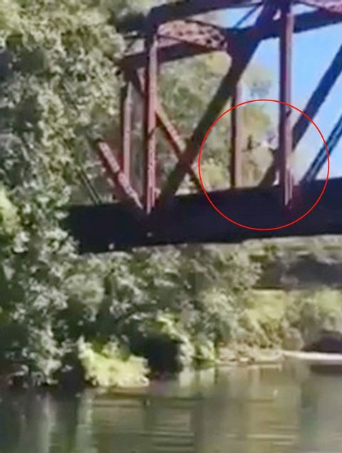 영상에는 약 8m 높이 데번셔 다리 위에서 한 남성이 어린아이를 다리 아래 물로 집어 던지는 모습이 포착돼 있다. 3층 높이 건물에서 떨어진 것과 다름없는 아이는 등으로 수면에 추락했다. 다리 밑에 있던 아이의 엄마가 곧바로 물속에 빠진 아이를 건져냈지만 어린아이는 충격으로 인해 숨을 제대로 못 쉴만큼 힘들어 한다.