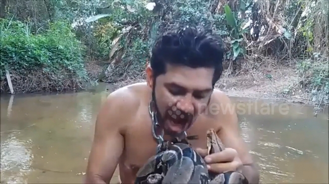 5일(현지시간) 영국 일간 데일리메일은 브라질 파라 주(州)에 사는 아르테발 두아르테(Arteval Duarte)라는 남성의 영상을 소개했다. 두아르테는 앞서 올해 초에도 살아있는 독사 4마리를 입안에 우겨넣는 영상으로 화제를 모은 바 있는 인물이다.