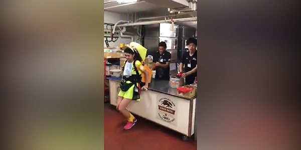 영상에는 비어걸들이 맥주통을 등에 짊어지고 주방테이블 위에 기댄다. 그러면 남자 직원들은 신속하게 새로운 맥주통으로 교체한다. 또 다른 직원은 그녀들에게 물을 떠 주기도 하고 맥주컵을 건네기도 한다.