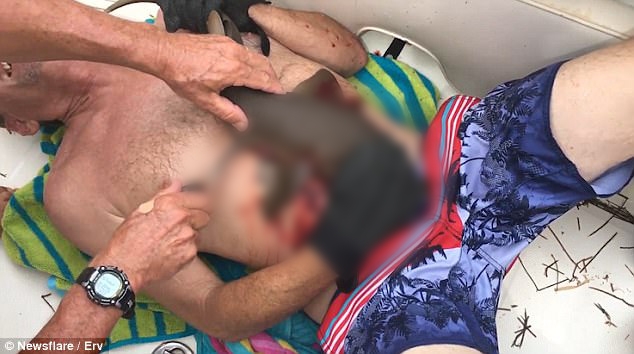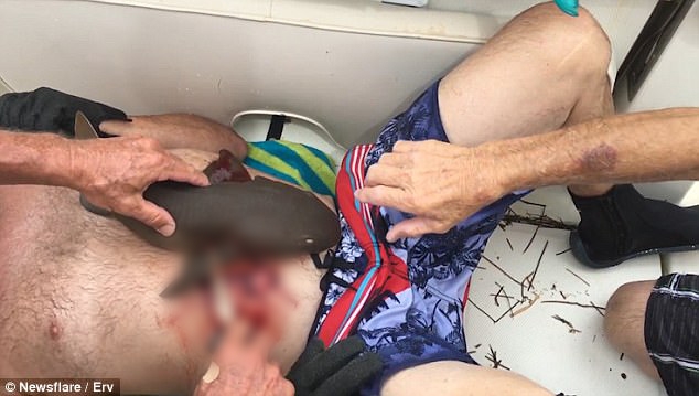 27일(현지시간) 영국 일간 데일리메일에 따르면, 이 영상은 미국 플로리다주 마라톤 인근 해변에서 촬영됐다. 당시 이곳에서 수영을 즐기던 에르빈 맥카티라는 남성은 갑작스런 상어의 공격에 복부를 물리고 말았다. 그는 고통을 호소하며 보트 위로 올라왔고, 그의 친구들은 상어를 떼어내려고 시도했다. 하지만 상어는 쉽사리 맥카티의 복부를 놓아주지 않았다. 자칫 맥카티의 목숨이 위험한 상황. 친구들은 상어를 칼로 잘라내기로 했다.
