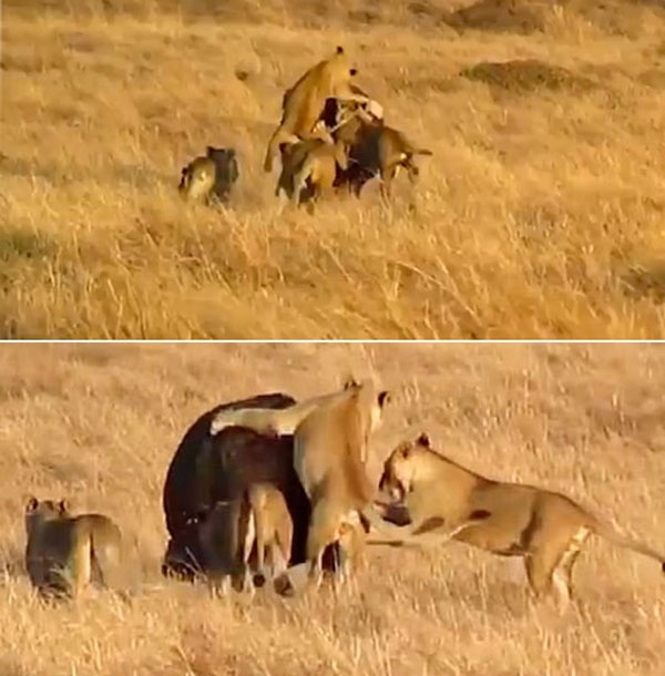 촬영된 영상에는 하마 한 마리를 두고 사냥에 나선 4마리의 사자의 모습이 담겨 있다. 목덜미를 물기 위해 하마 등에 오르려는 사자 한 마리. 하마의 큰 키에 매번 오르기를 실패한다.