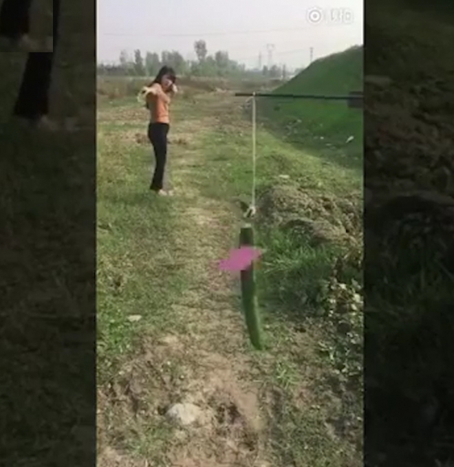 지난 29일 영국 동영상 공유사이트 라이브릭은 포커 게임용 카드 한 장으로 오이를 두 동강 낸 한 중국 여성의 놀라운 슬링샷을 소개했다.