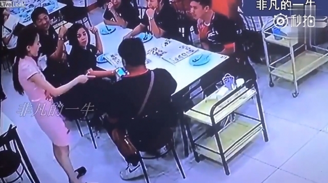 버젓이 주문 받는 여종업원 스커트 안을 핸드폰으로 촬영하다 걸린 한심한 남성의 모습을 지난 15일 영국 동영상 공유사이트 라이브 릭 등 여러 외신이 전했다.